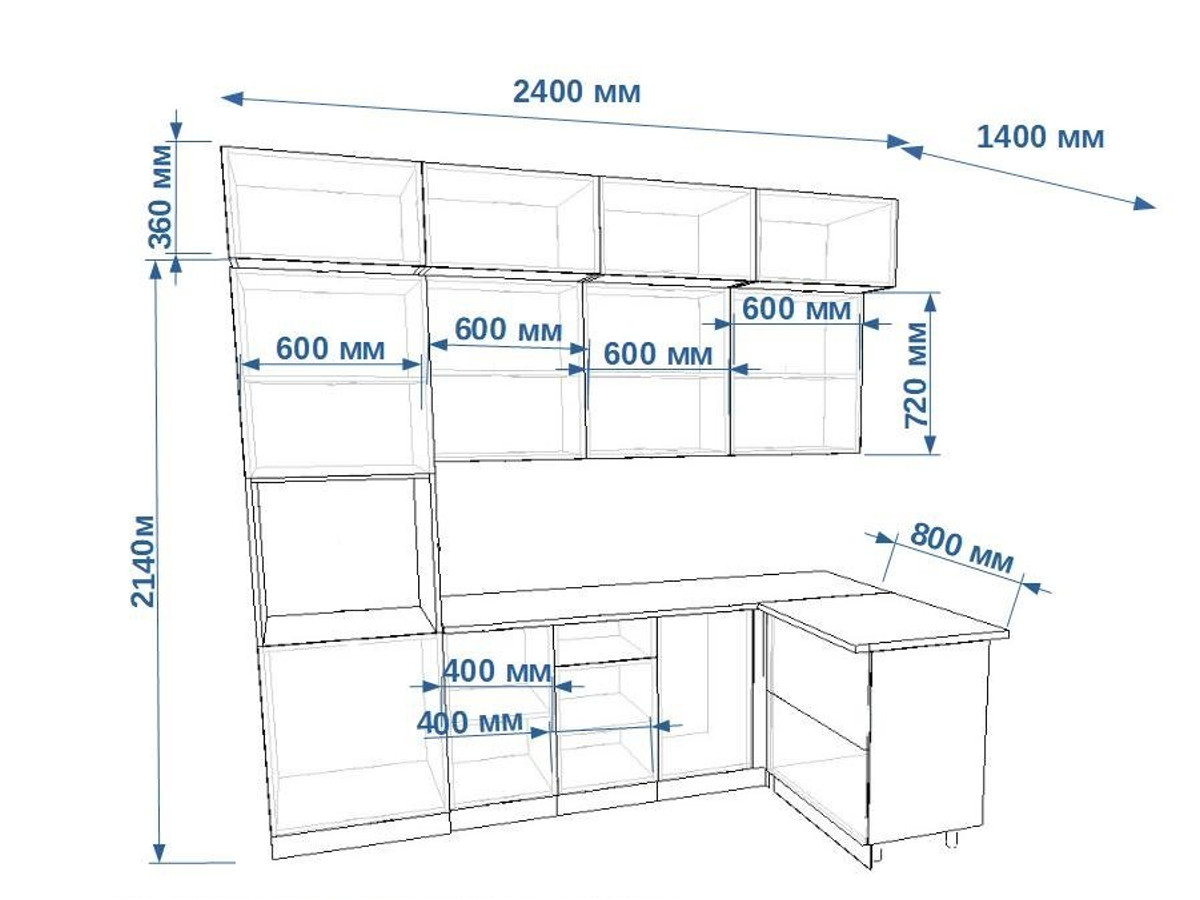 Кухонная мойка, стеновая панель, посудосушитель, планки для столешницы в комплект не входят.