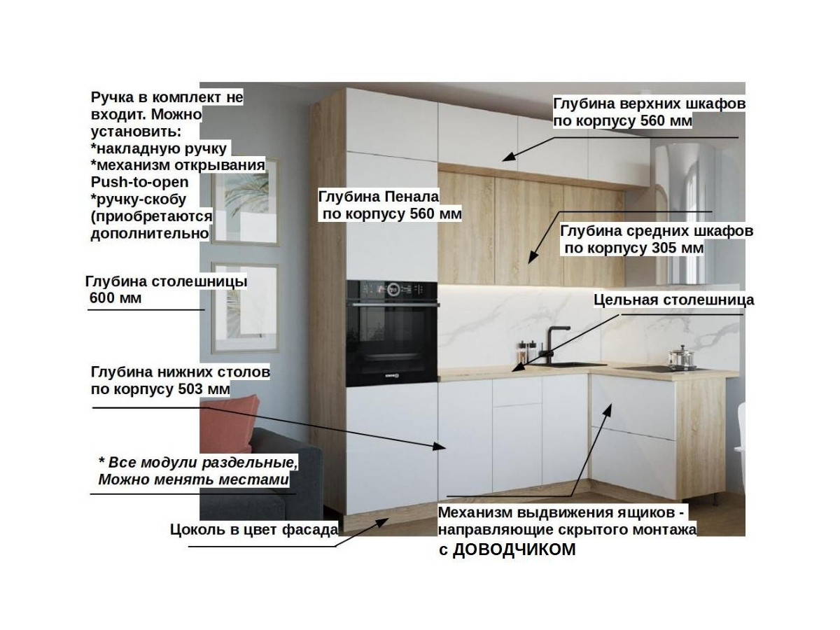 - Кухонный гарнитур арт 3 Тальк Дуб сонома 2400х1400 мм