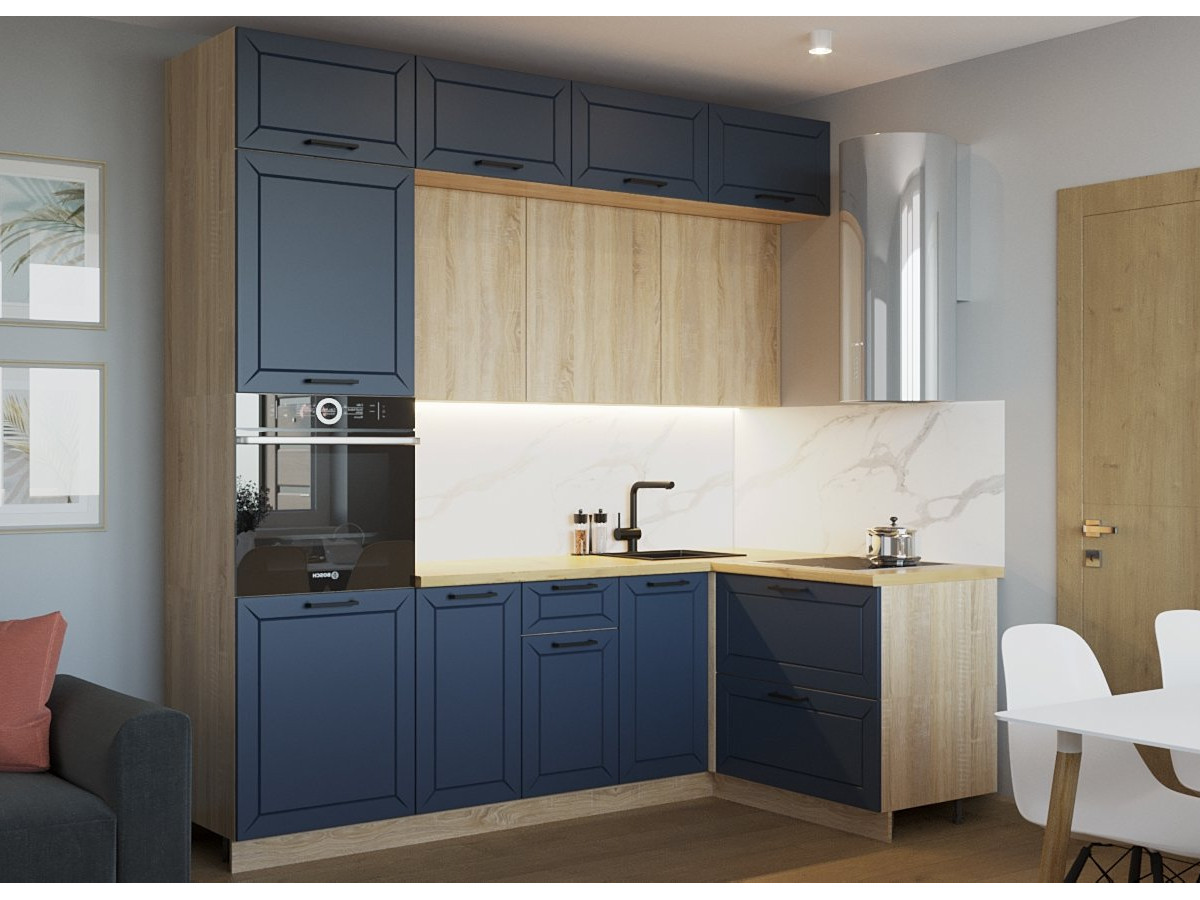 Кухонная мойка, стеновая панель, посудосушитель, планки для столешницы в комплект не входят.