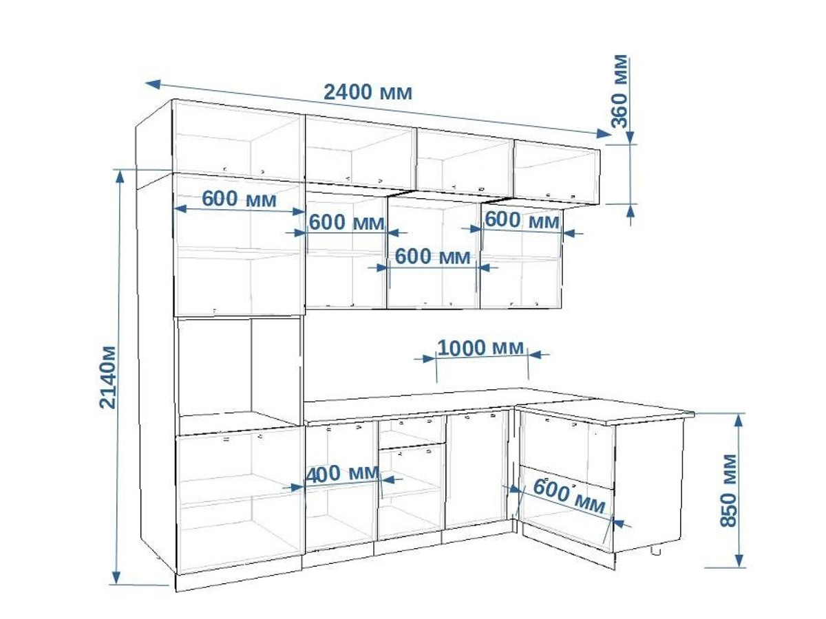 - Кухонный гарнитур арт 7 Океания Кристалл 2400х1200 мм