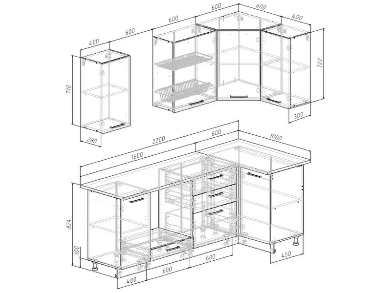 - Столешница: ЛДСП 26мм со скругленным краем (в пластике)