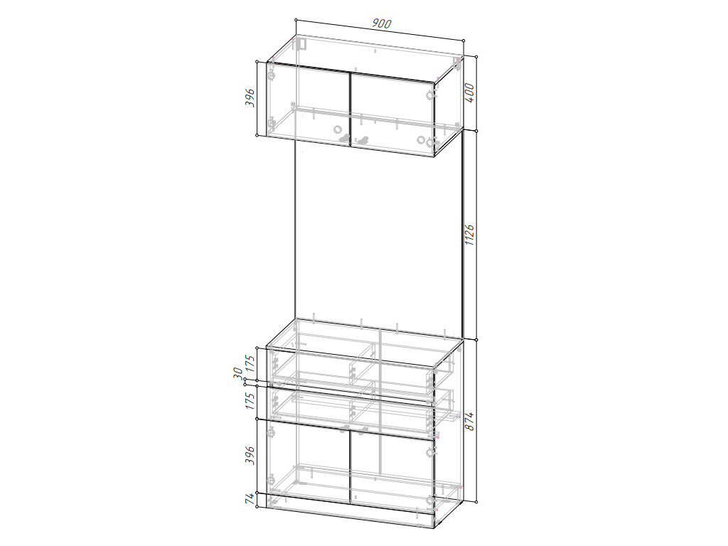 1)Верхняя (антресольная) часть шкафа без перегородки.