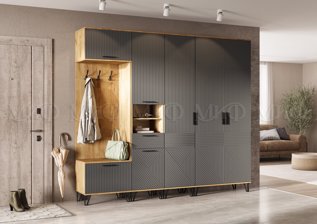 - Прихожая Флэш Браш Графит, Дуб Крафт