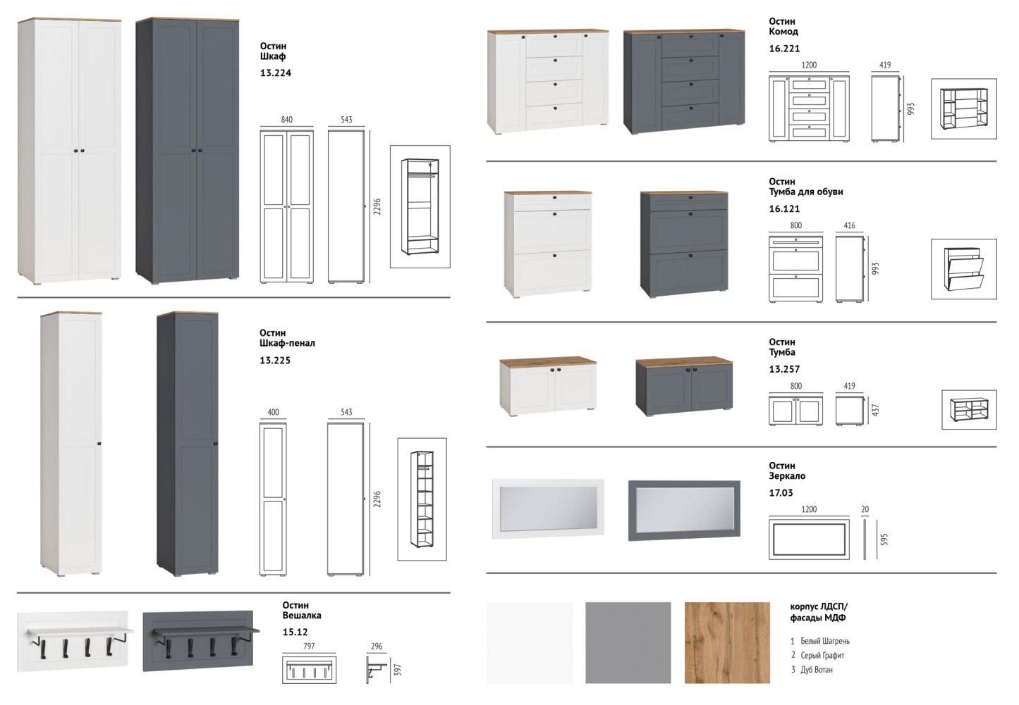 Цена за комплект: Вешалка, Зеркало, Шкаф 13.224, Шкаф-пенал, Тумба для обуви 16.121, Тумба 13.257