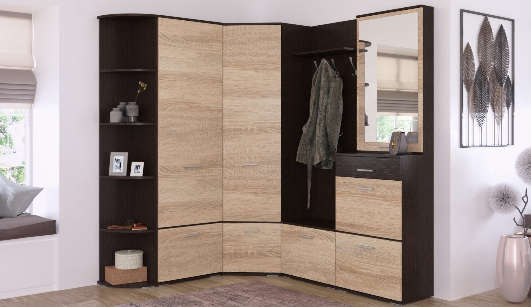 Прихожая модульная, цена зависит от комплектации. Цена указана за комплект на главном фото - комод с зеркалом, стеллаж угловой, тумба с вешалкой, шкаф, шкаф угловой