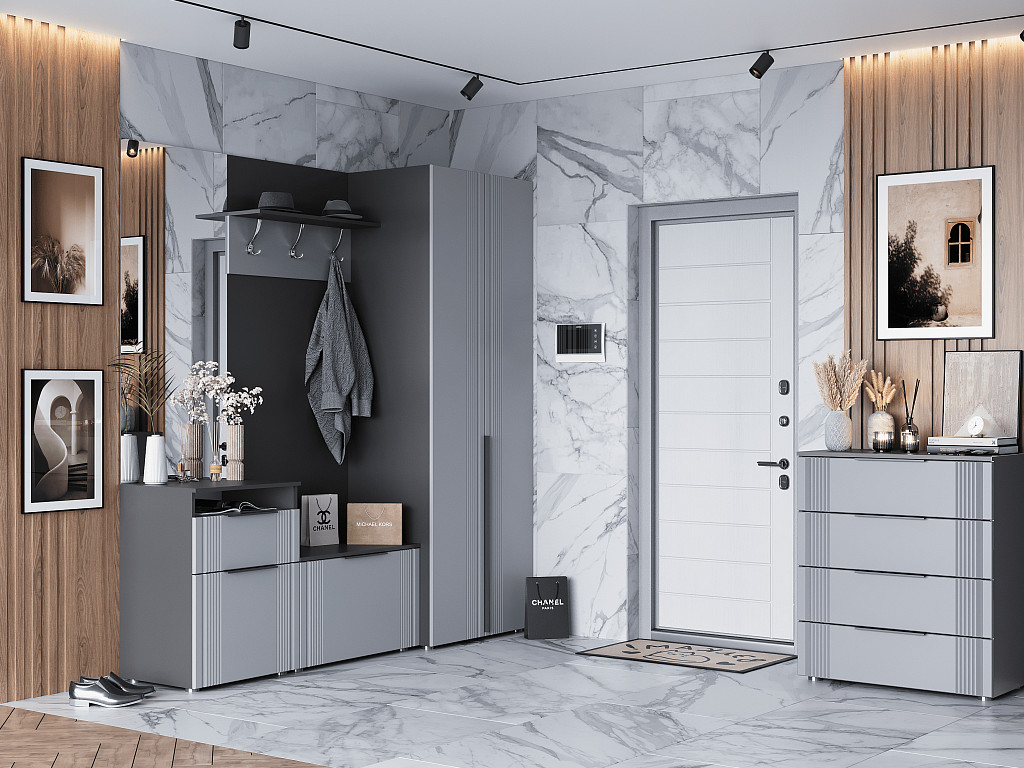 Цена за комплект: Комод с 4 ящиками, Шкаф 2-створчатый для одежды, Панель под вешалки 800, Тумба 1-створка 800, Зеркало , Тумба 1-створка с ящиком и нишей