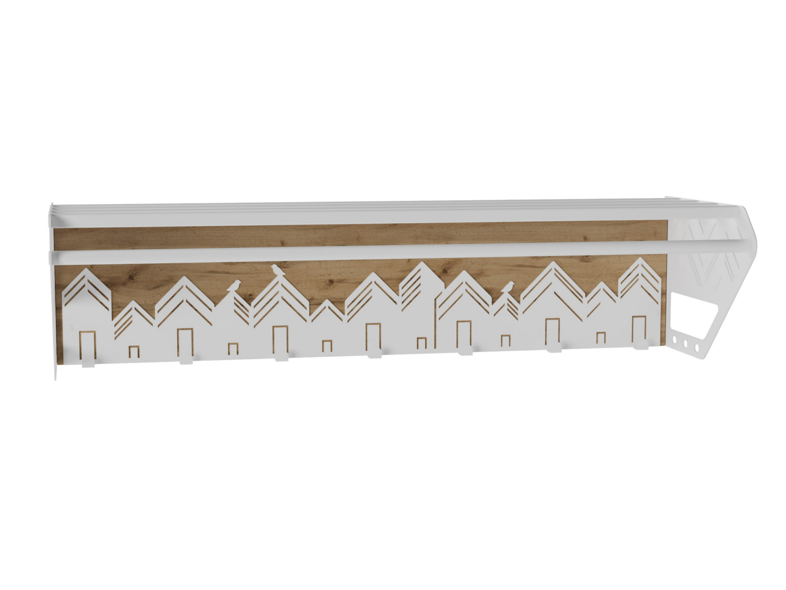 Вешалка выполнена из экологичного и прочного материала МДФ в сочетании с листовым металлом 1,5 мм.