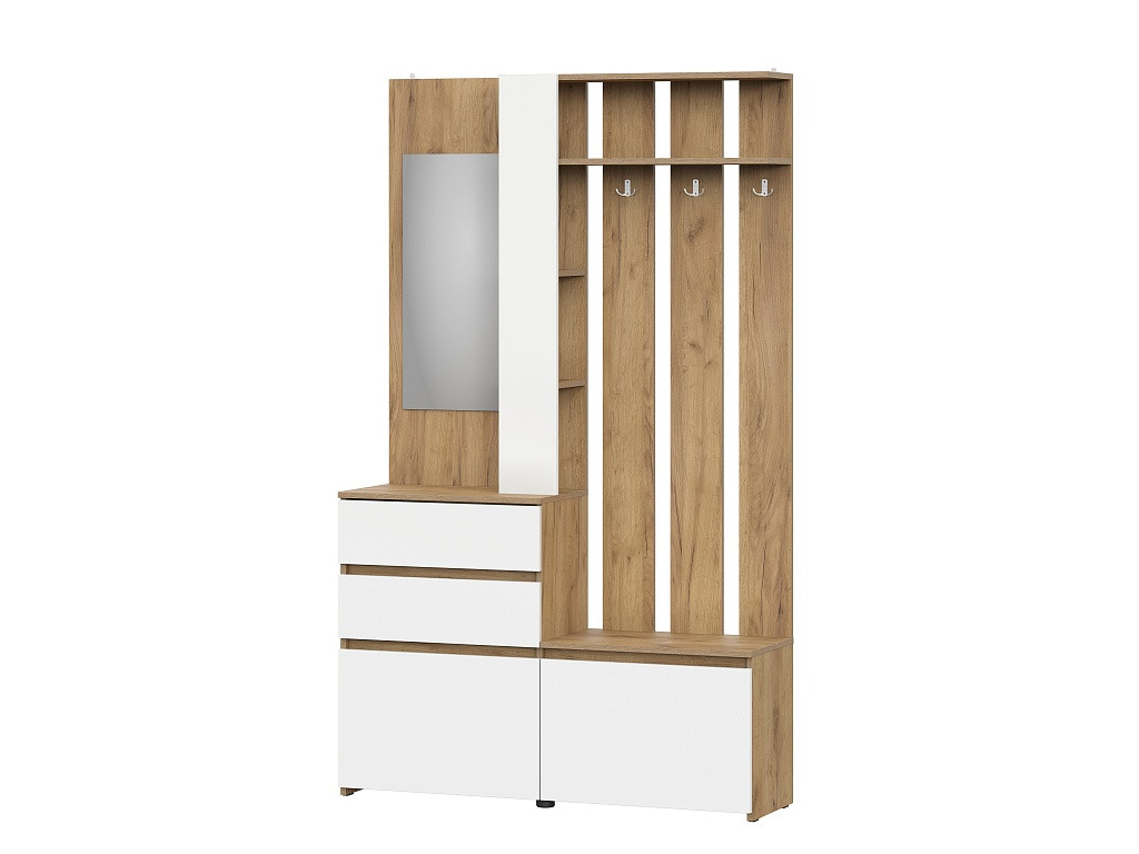 - Вешалка с зеркалом Некст 1 Дуб Золотой/Белый
