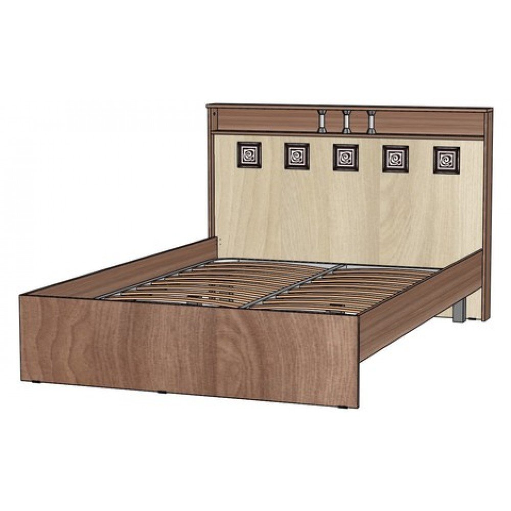 Материал ЛДСП. Кромка ПВХ, в комплекте кровати идет основание - ортопедические ламели. На изголовье кровати применено декоративное стекло с рисунком, окрашенное по специальной технологии