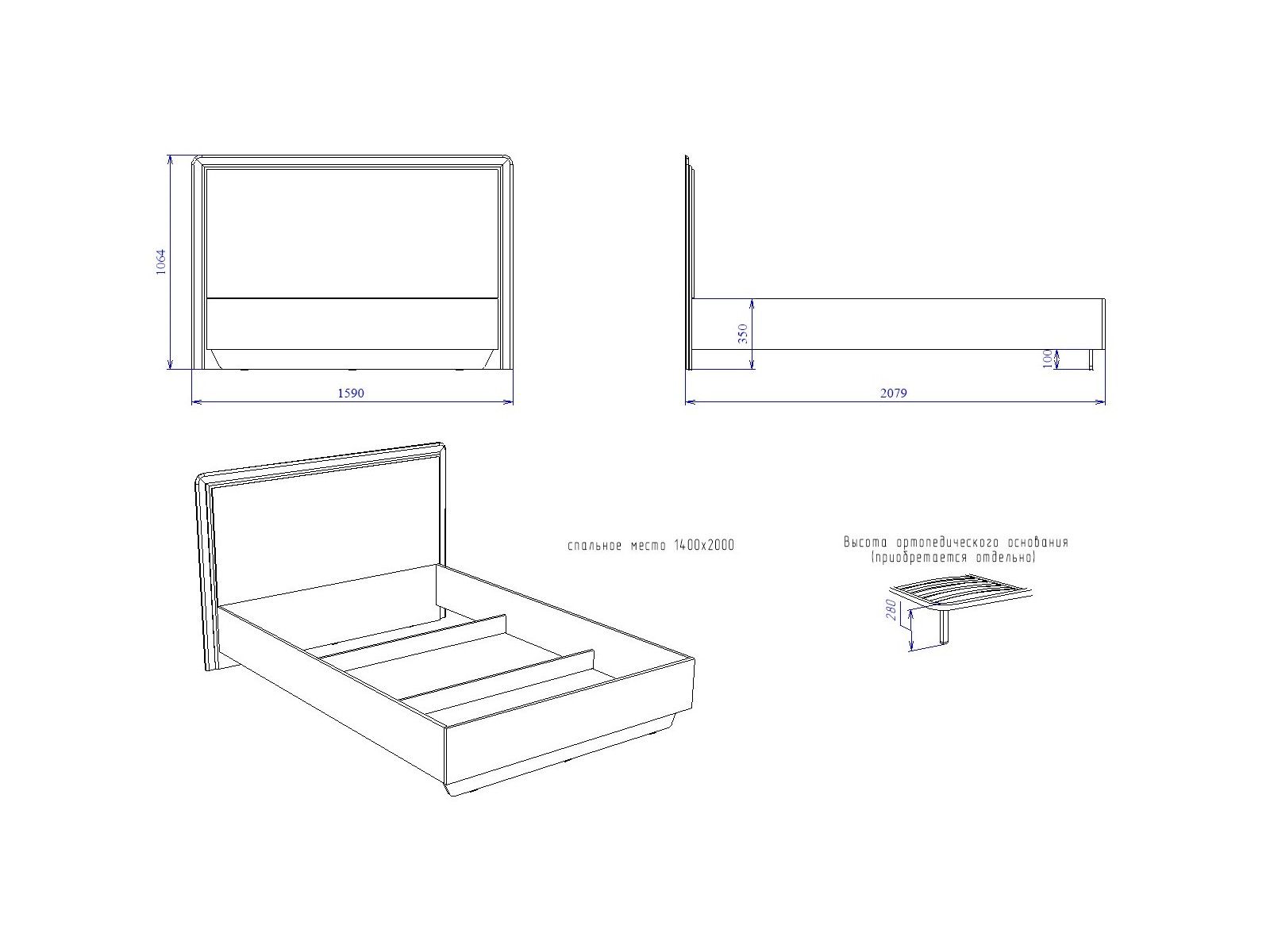 Спальное место: 1400*2000 мм