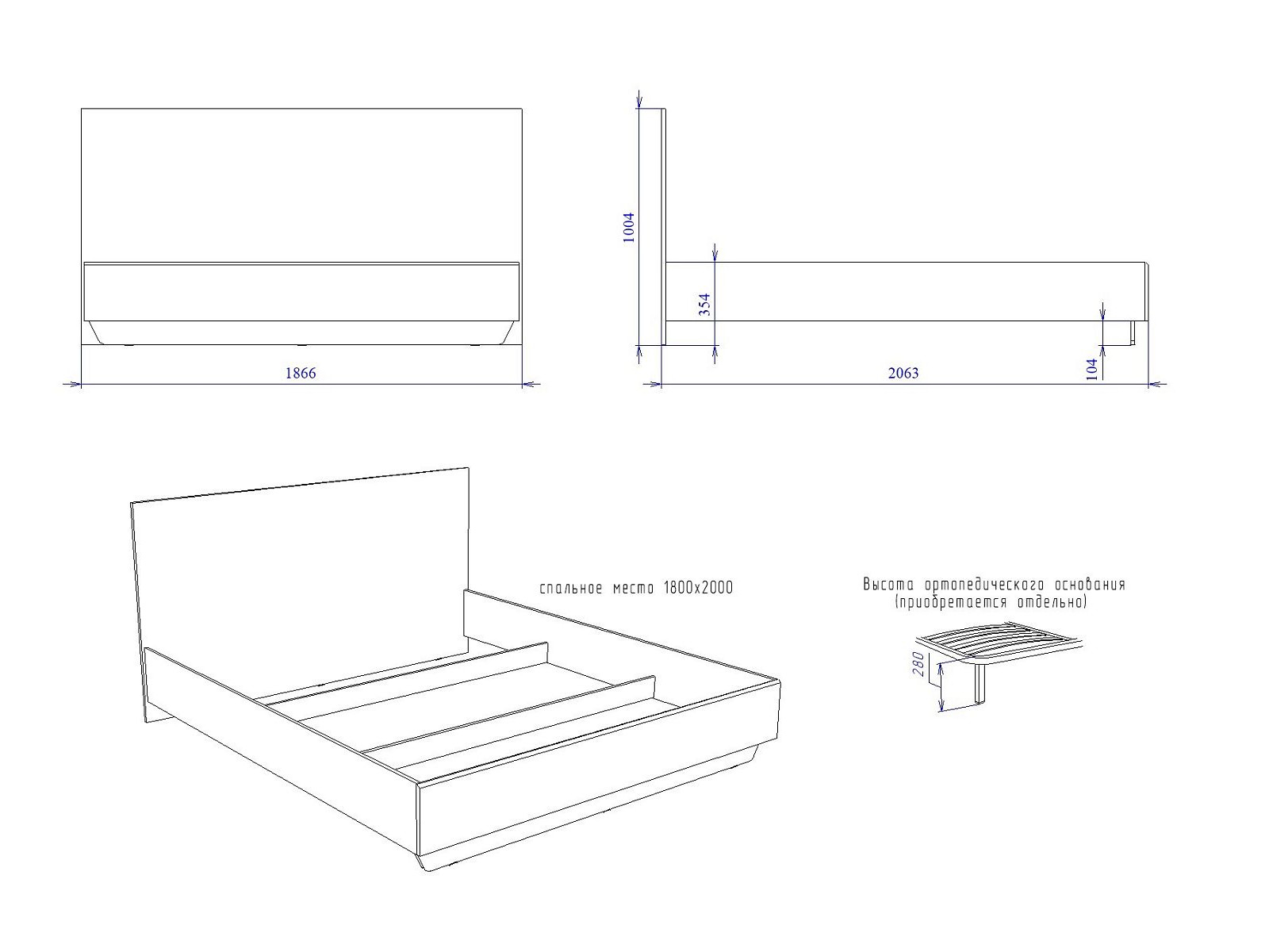 Спальное место: 1800*2000 мм