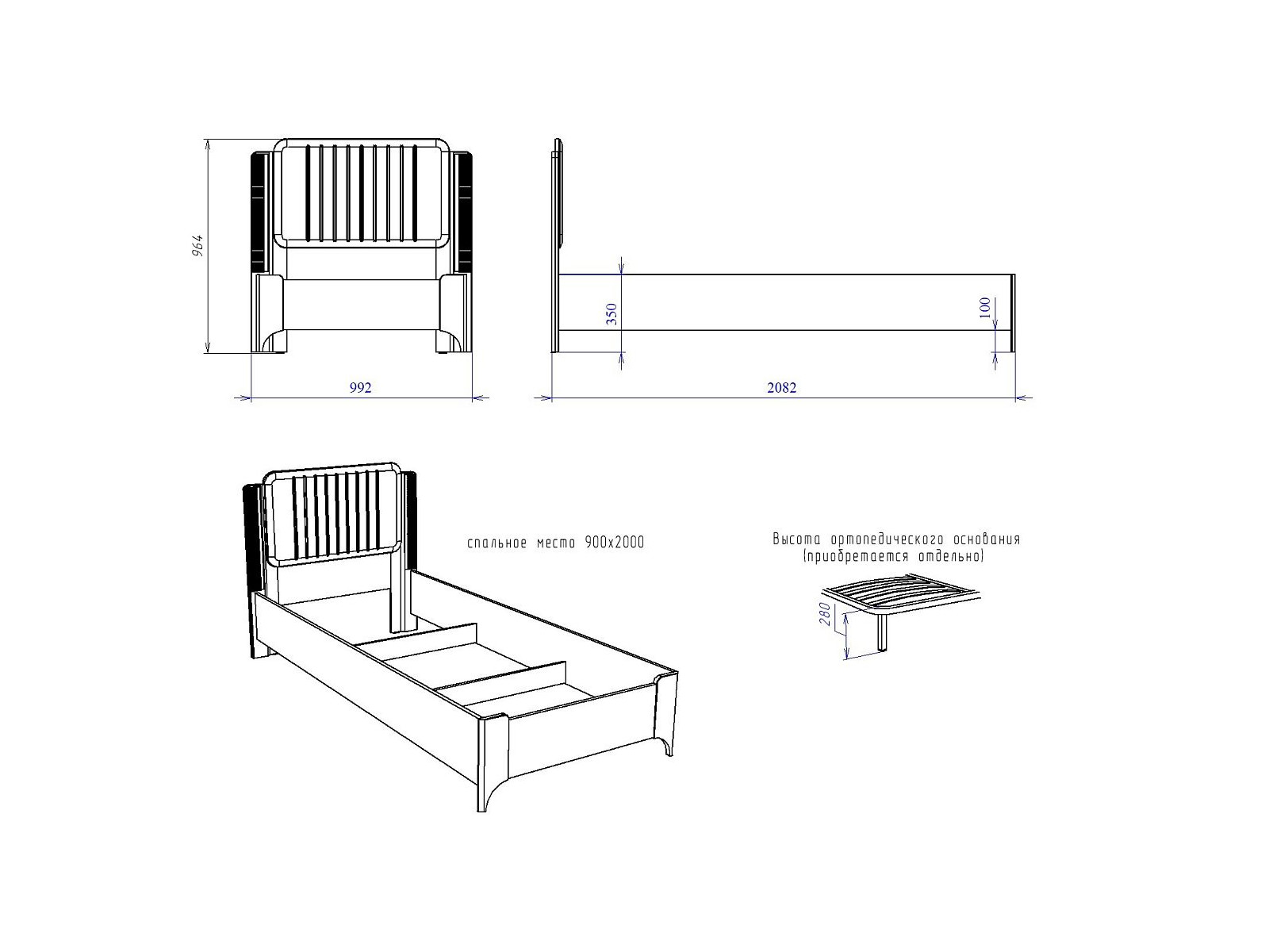 Спальное место: 900*2000 мм