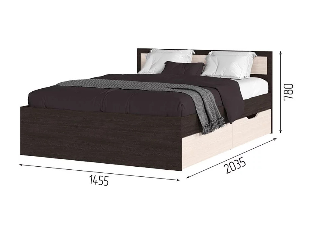 - Кровать Гармония с ящиками 140х200 см Венге/Дуб белфорд