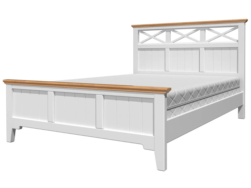 - Кровать Грация-5 1400 Белый античный с карнизом Сосна