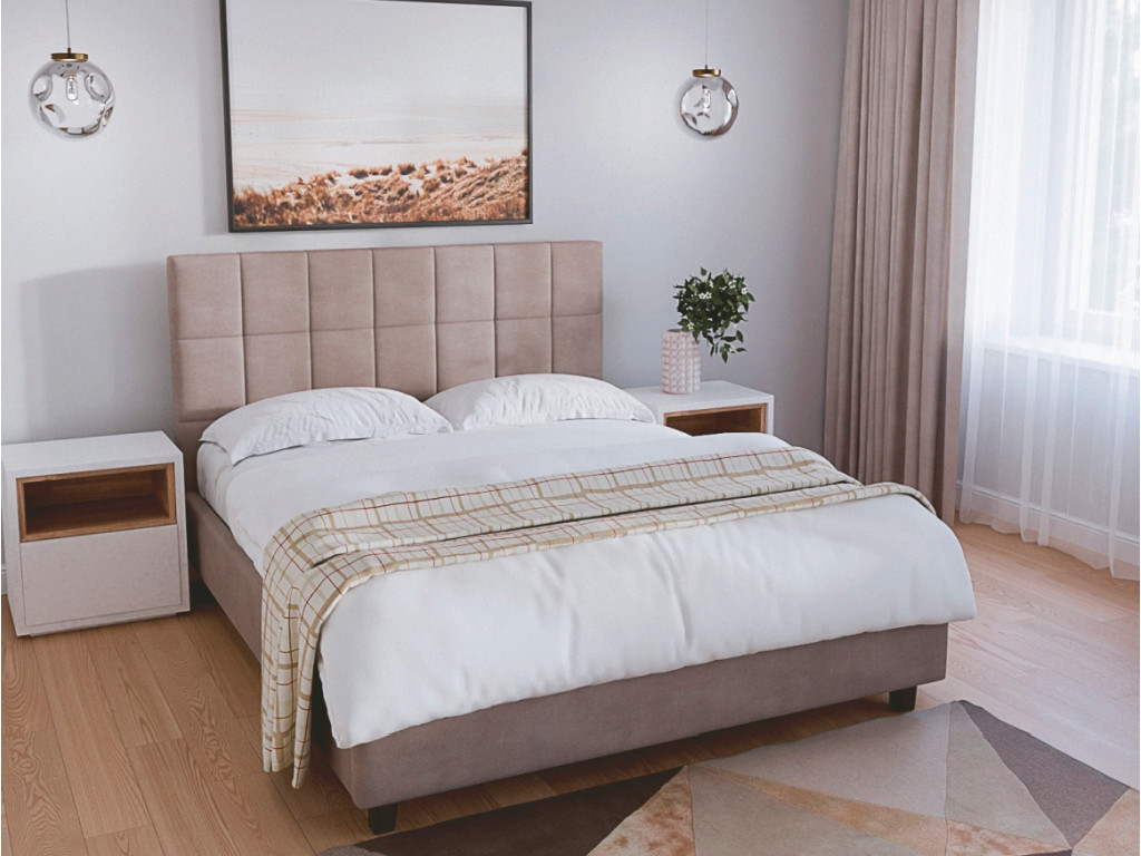 Кровать имеет подъемное ортопедическое основание и короб с дном из МДФ.