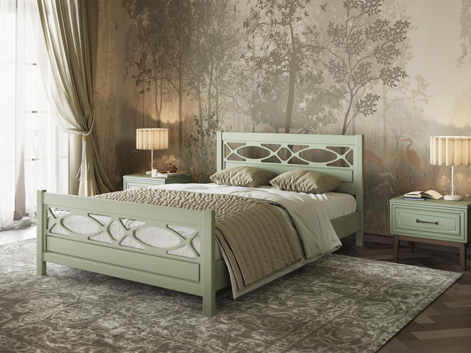 - Кровать Лоренса 1400 Зелёный самшит