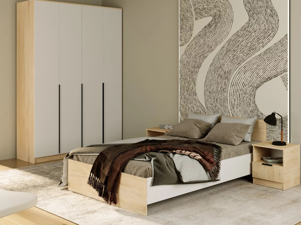 - Кровать Монблан 160х200 см Белый Шагрень-Дуб сонома