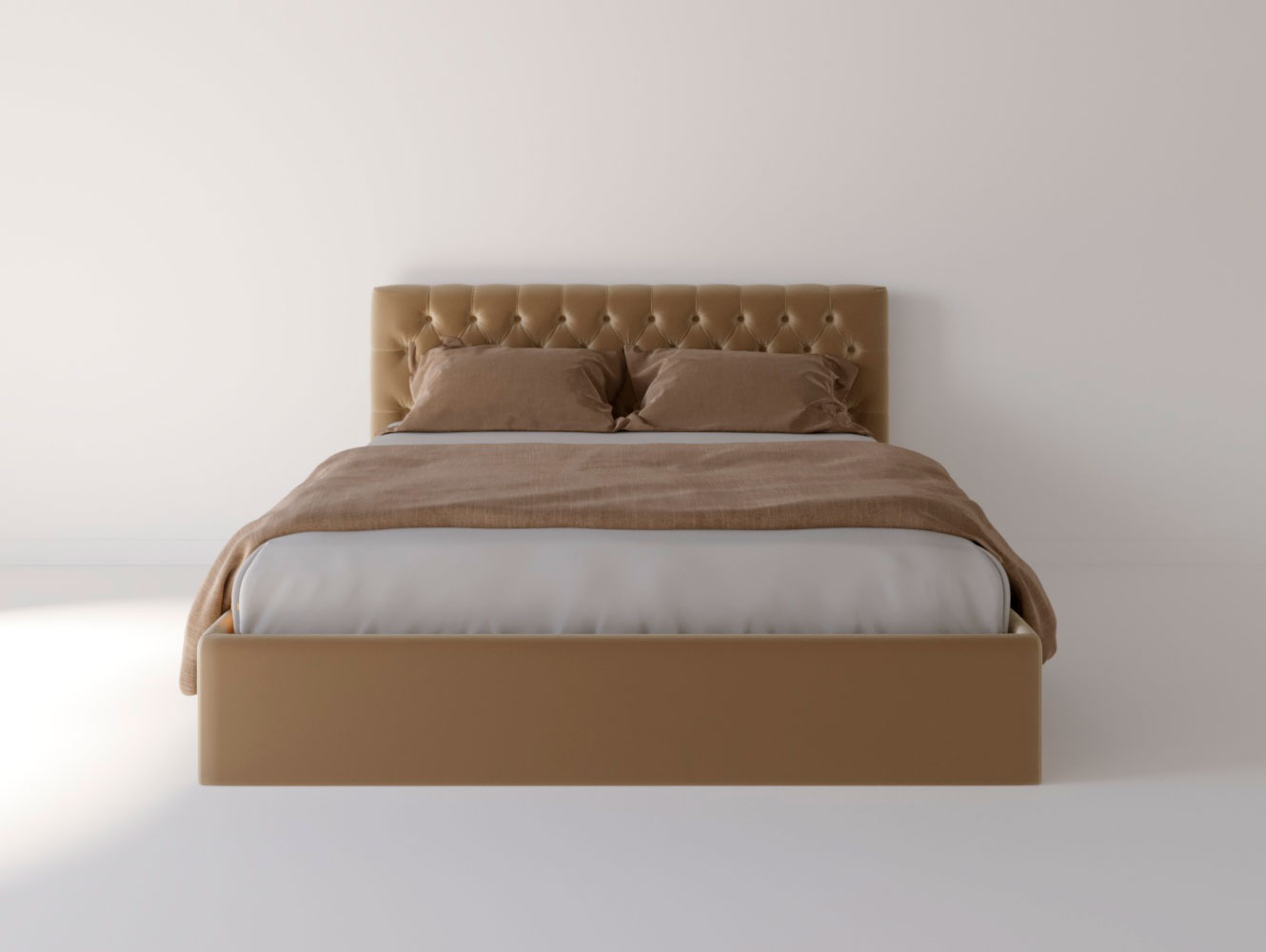 Изголовье: Изголовье оформлено с эффектом каретной стяжки, что создает эффектный акцент в дизайне. Этот элемент не только эстетичен, но и функционален, обеспечивая поддержку во время чтения или отдыха.