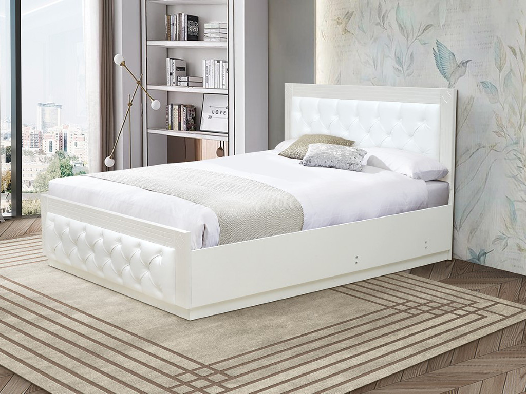 - Кровать Венеция 13.3 1400 основание ладе кожзам белый