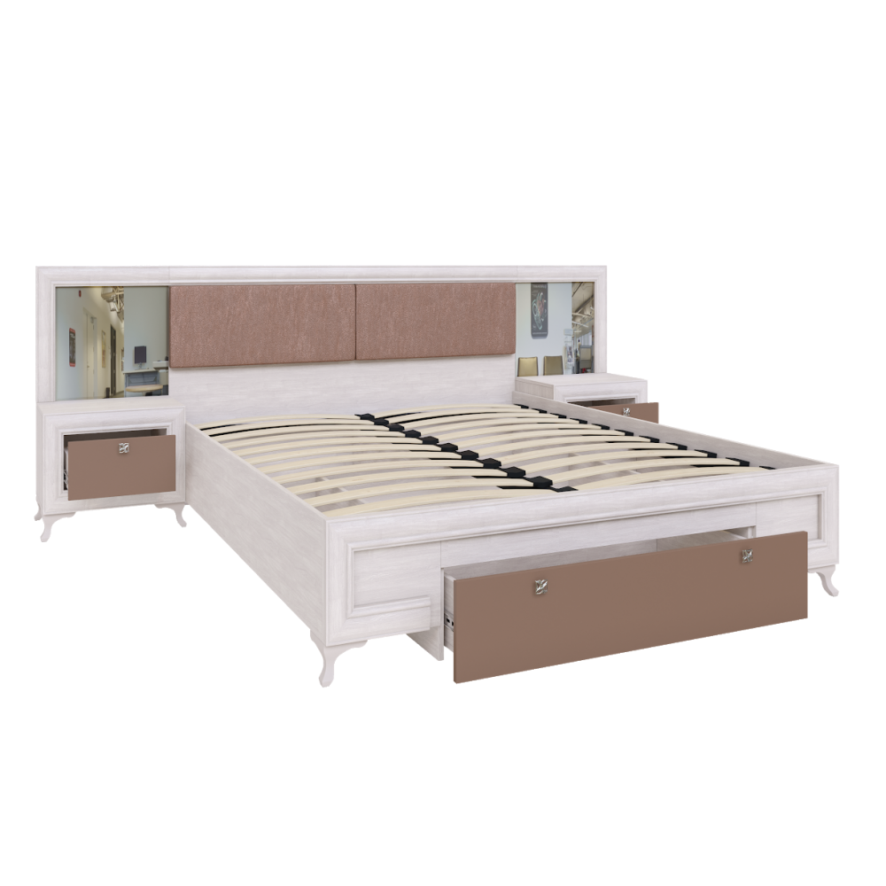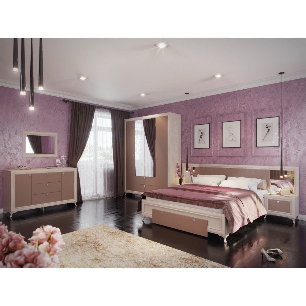 Цена указана за комплектацию на главном фото (шкаф четырехдверный, кровать с ортопедическим основанием, комод, зеркало)