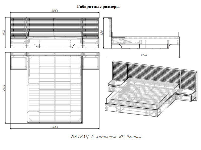 Габариты: Д.2656 х В.920 х Г.2134 мм;