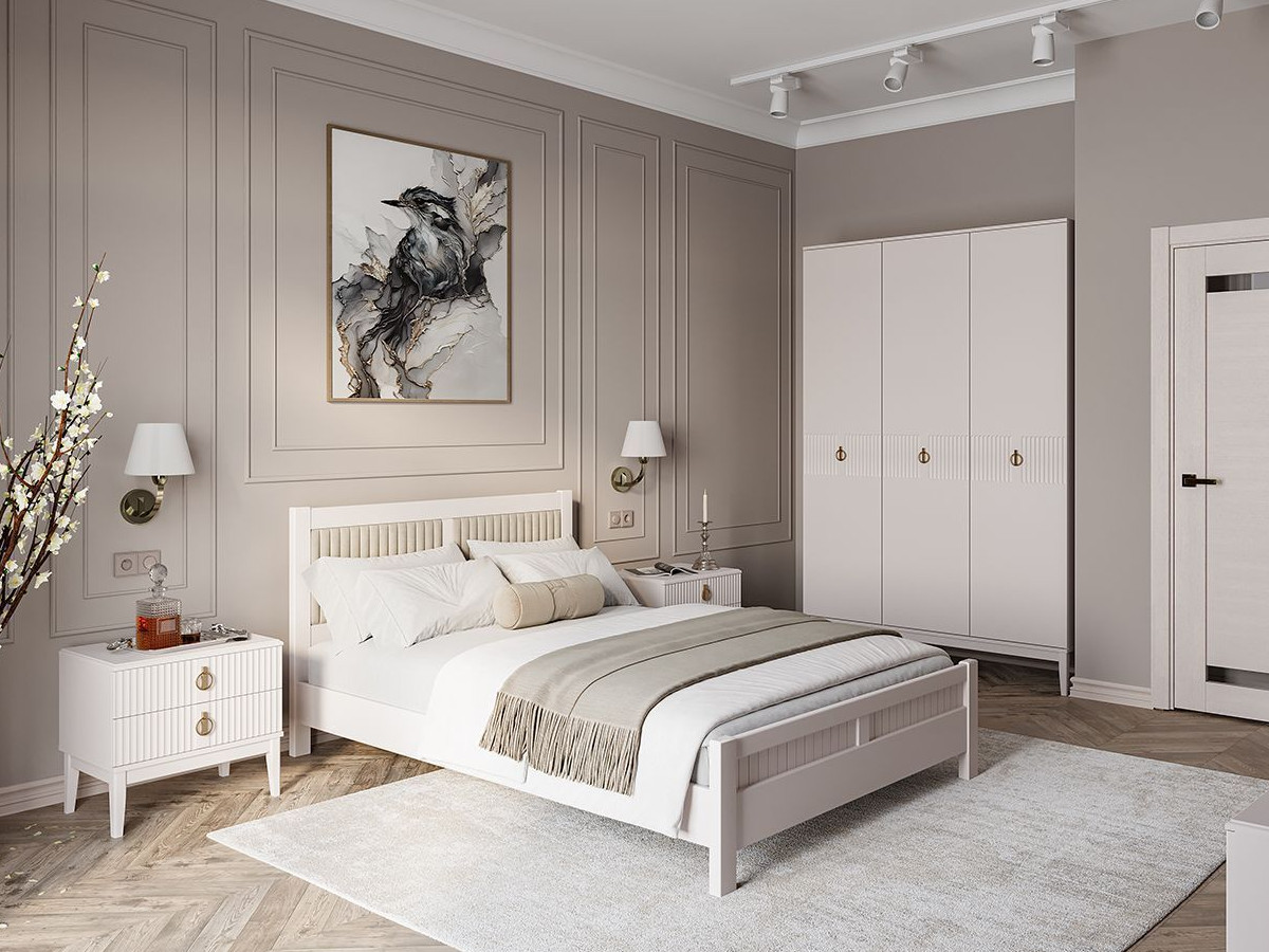 Цена указана за комплектацию на фото: Тумба прикроватная (2шт), Шкаф для одежды ШР-3, кровать Фрида 1400, Комплектующие на кровать с ламелями 1400