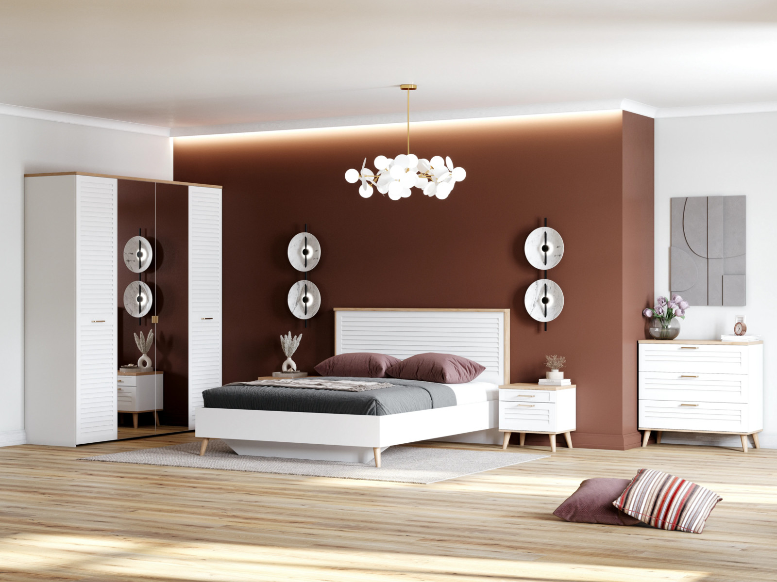 Цена за комплект: шкаф 4 двери, кровать, тумба, комод 3 ящика