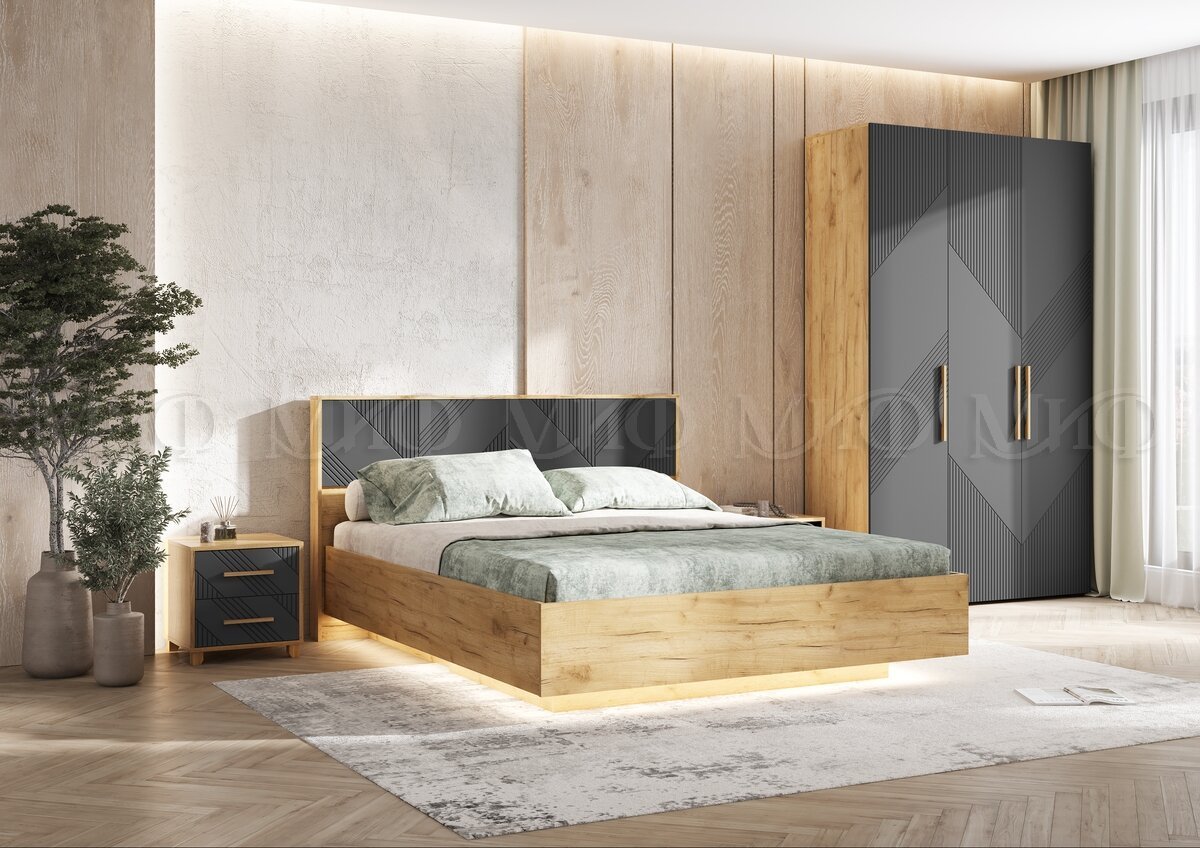 - Спальня Ирис Браш Графит/Дуб Крафт