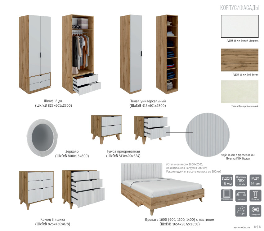 - Спальня Лаура Дуб вотан/Белый шагрень