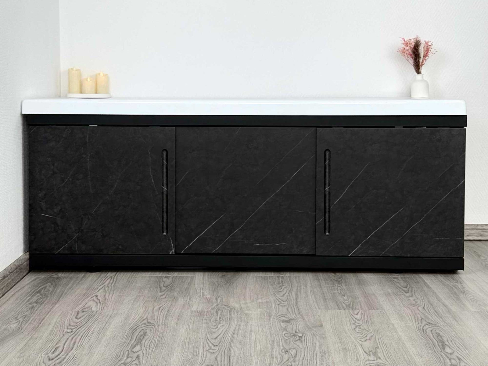 - Экран под ванну МДФ Alt Black 1600 мм черный мрамор
