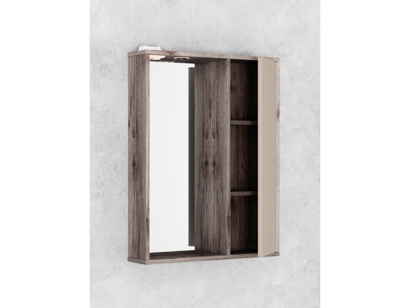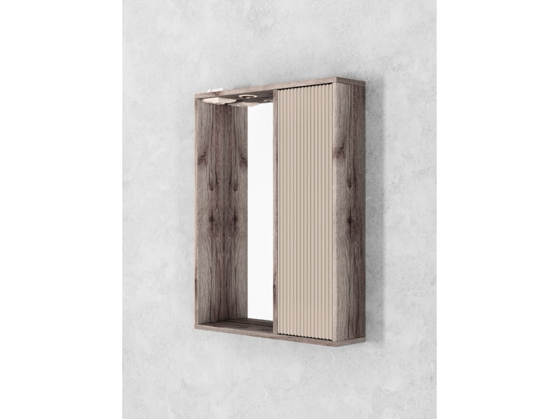 - Шкаф-зеркало Рица 80 со светильником правый cерый/керамика