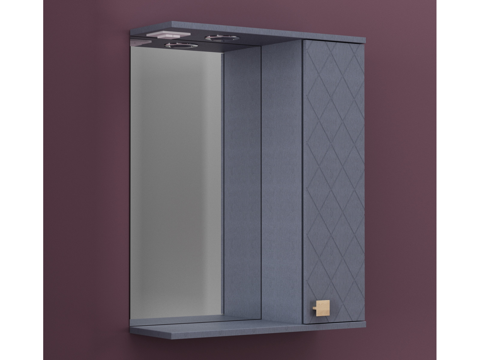 Зеркало "Кристалл" 70 со светильником правый, ручка кнопка дуб