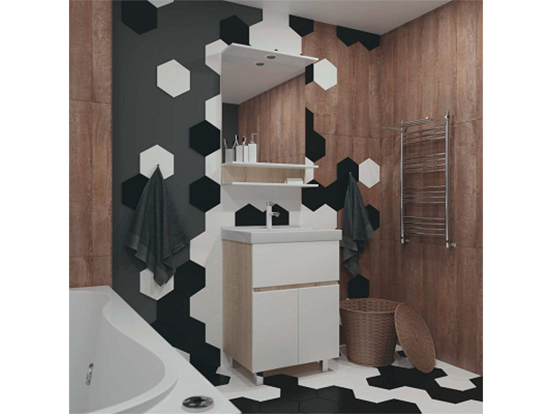 - Зеркало "Нева" 60 дуб/белый со светильником 600*800*156