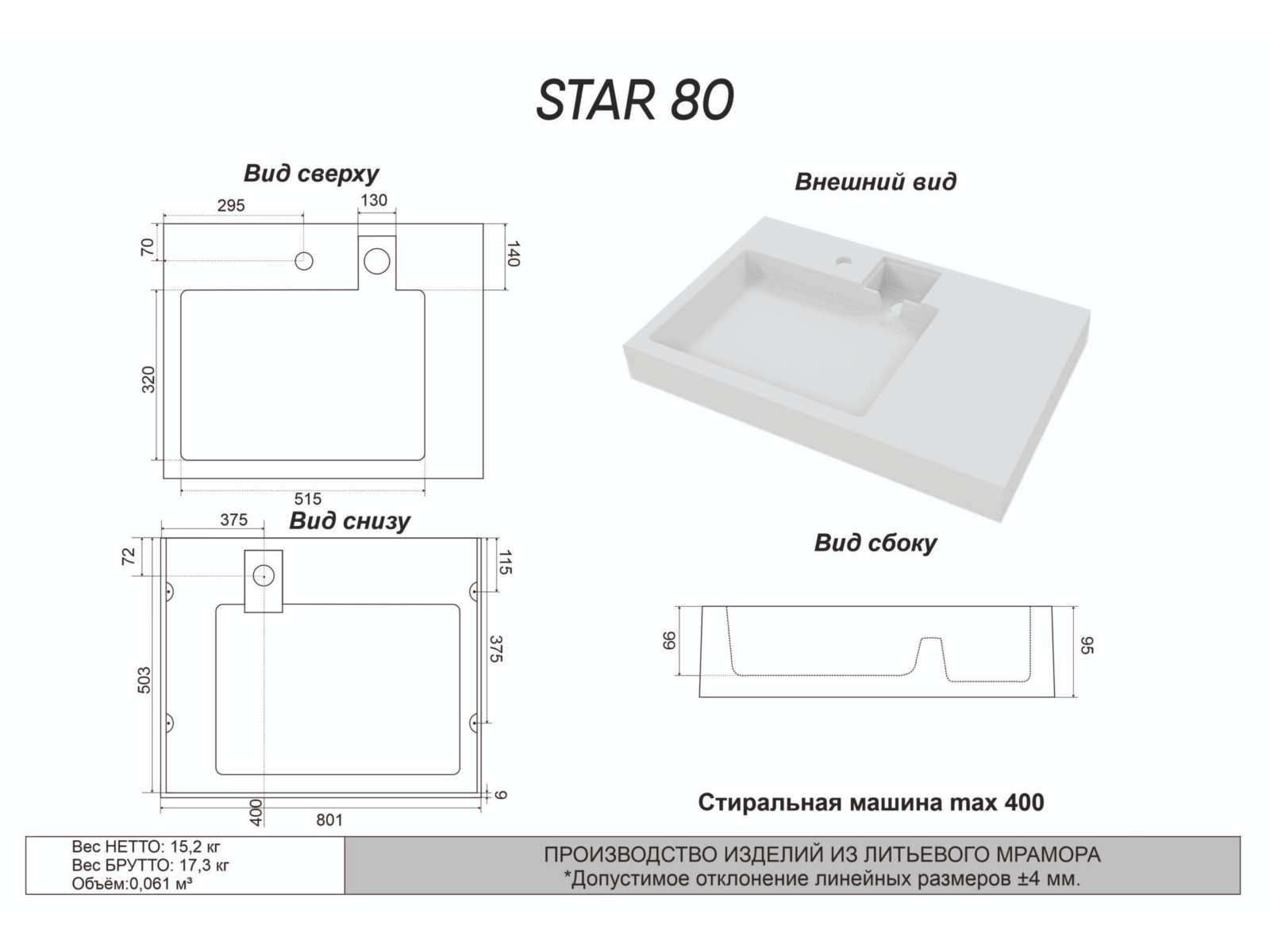 - Раковина над стиральной машиной Star 80