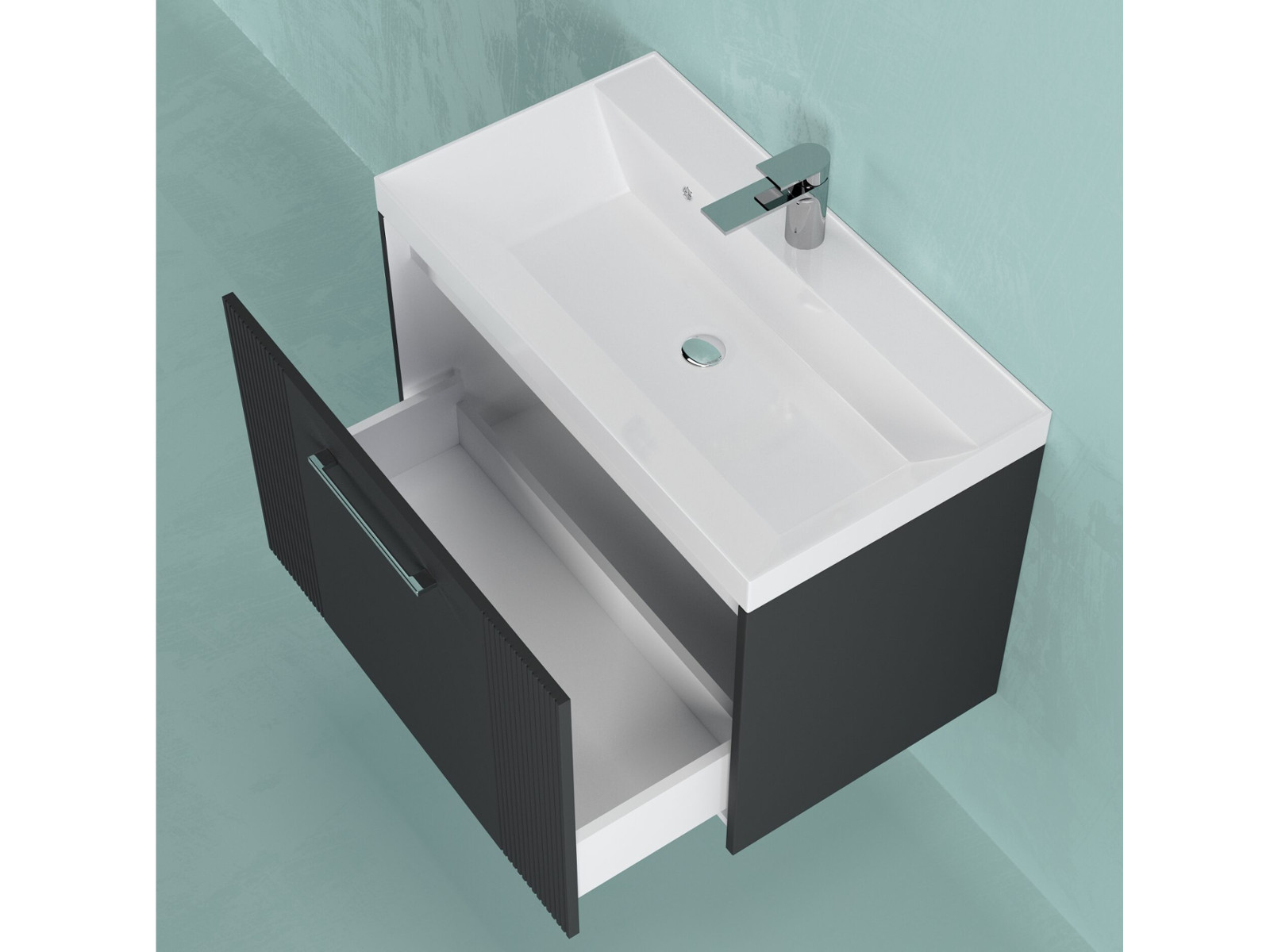 - Тумба Альба 60 подвесная 1 ящик раковина Океан 60 антрацит