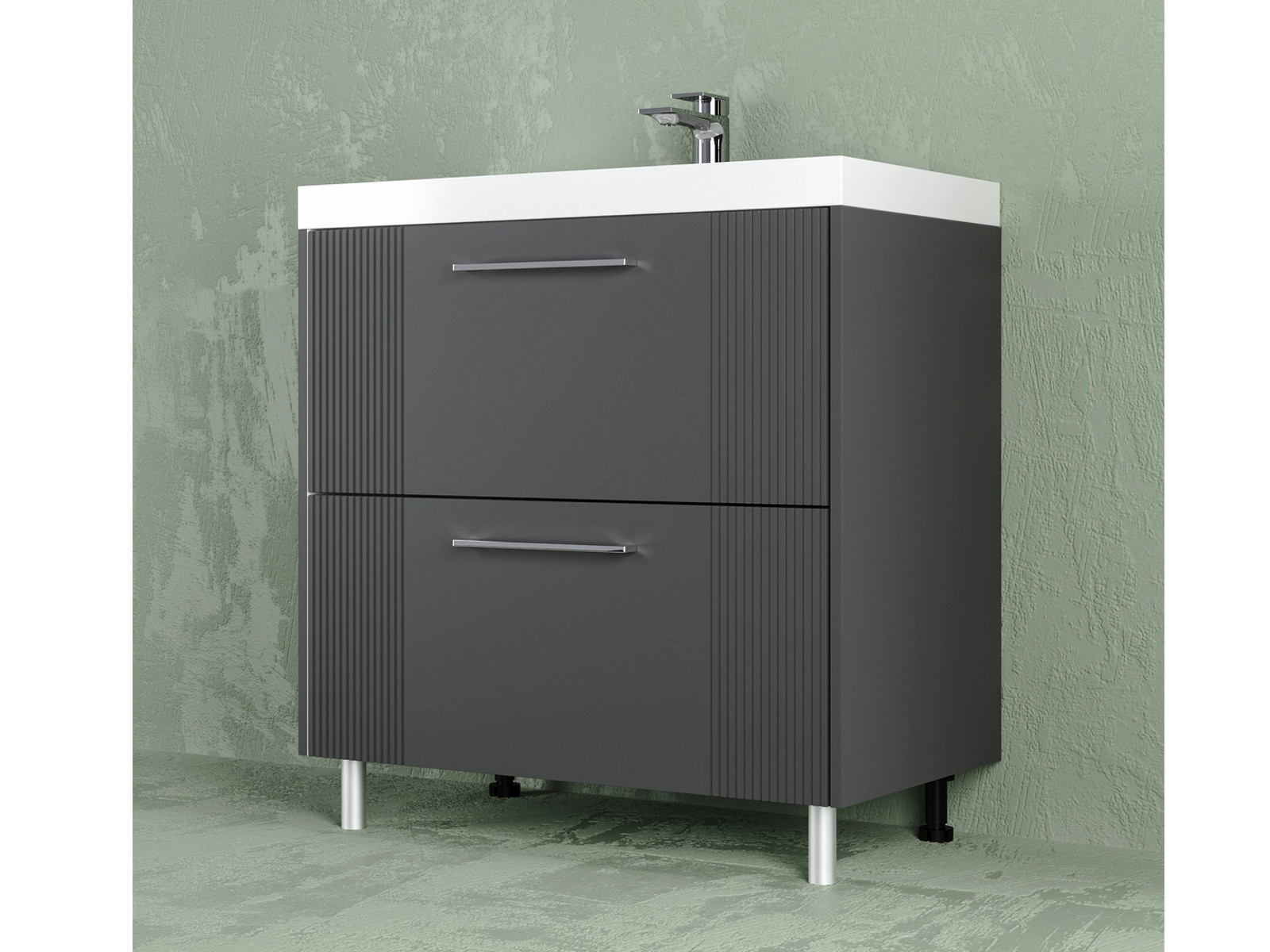 - Тумба Альба 70 напольная 2 ящика Слим 70 антрацит