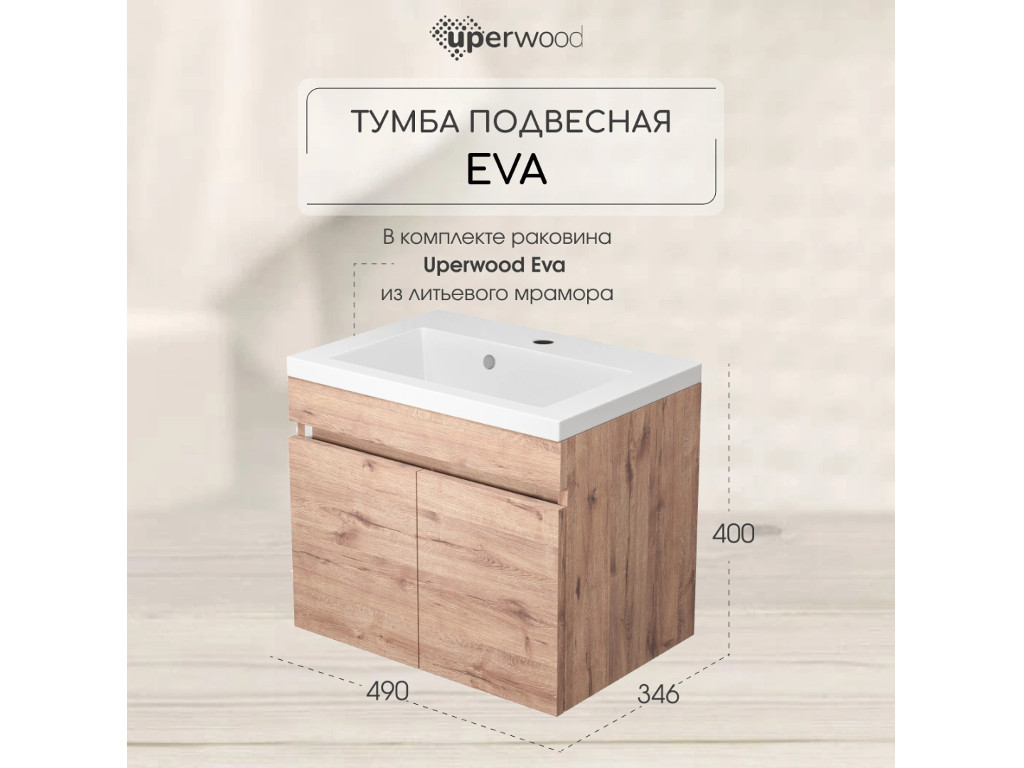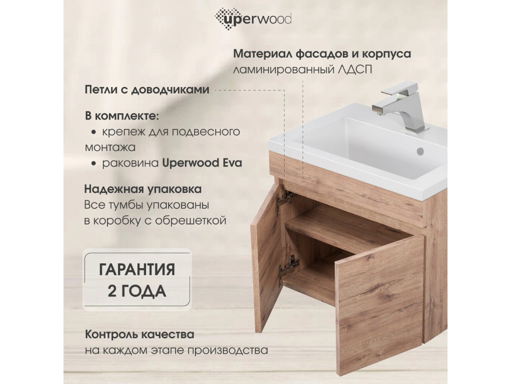 - Тумба с раковиной Uperwood Eva Крафт Табачный 50 см