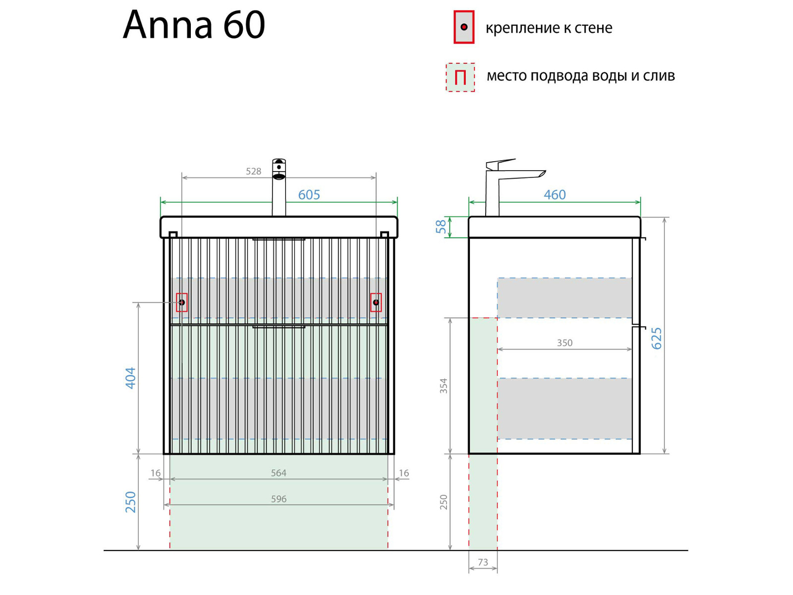 - Тумба с раковиной Anna 60 Умывальник Moduo 60
