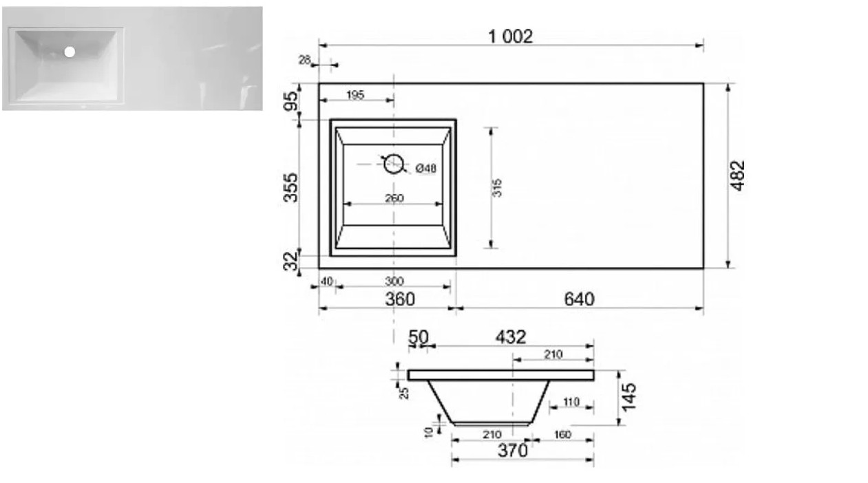 - Тумба с раковиной Dallas Luxe 1000 навесная 1 ящик левая