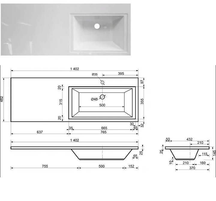 - Тумба с раковиной Dallas Luxe 1400 напольная 2 ящика правая