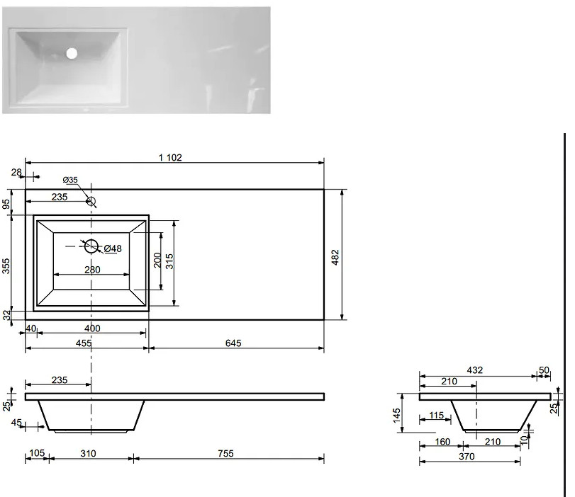 - Тумба с раковиной слева Dallas Luxe 1100 навесная 1 длинный ящик