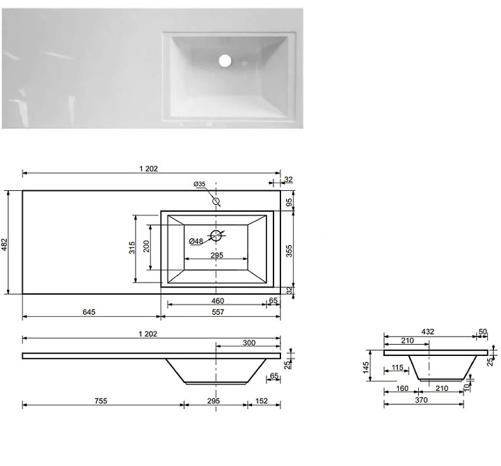 - Тумба с раковиной справа Dallas Luxe 1200 навесная 1 длинный ящик