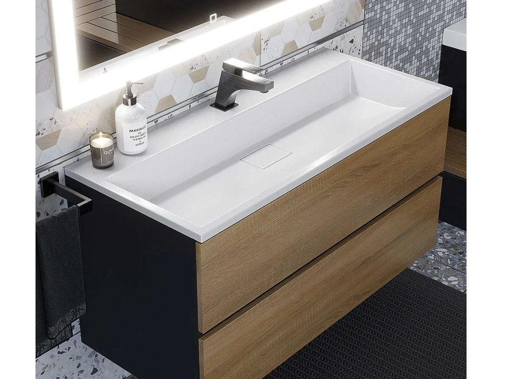 Тумба с раковиной Uperwood Barsa 100 см раковина белая-тумба черная/дуб сонома