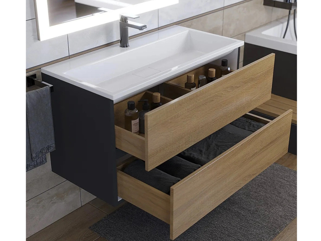 Тумба с раковиной Uperwood Barsa 90 см раковина белая-тумба черная/дуб сонома