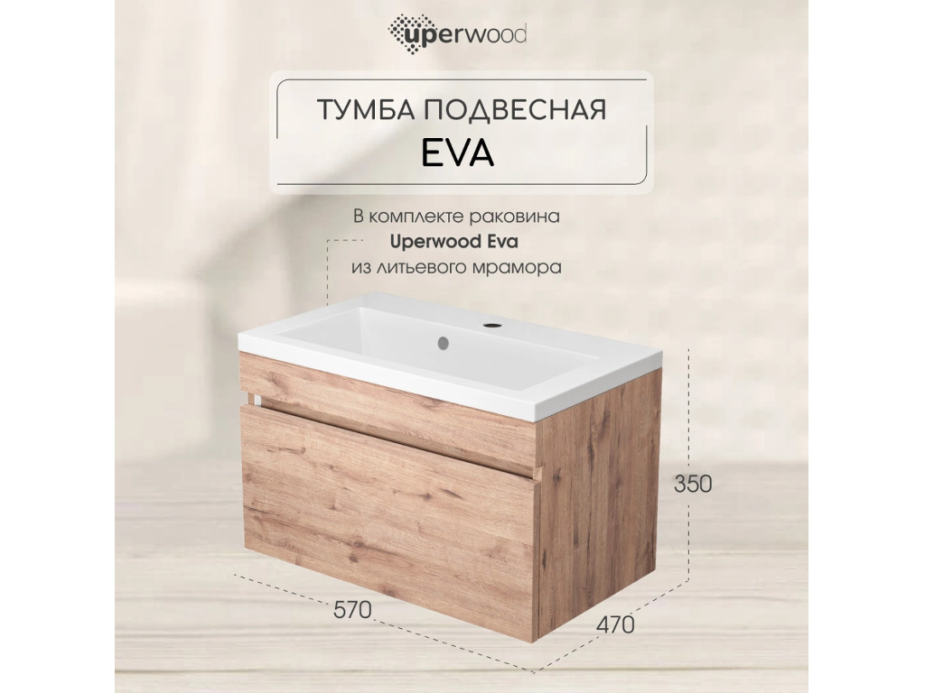 - Тумба с раковиной Uperwood Eva Крафт Табачный 60 см