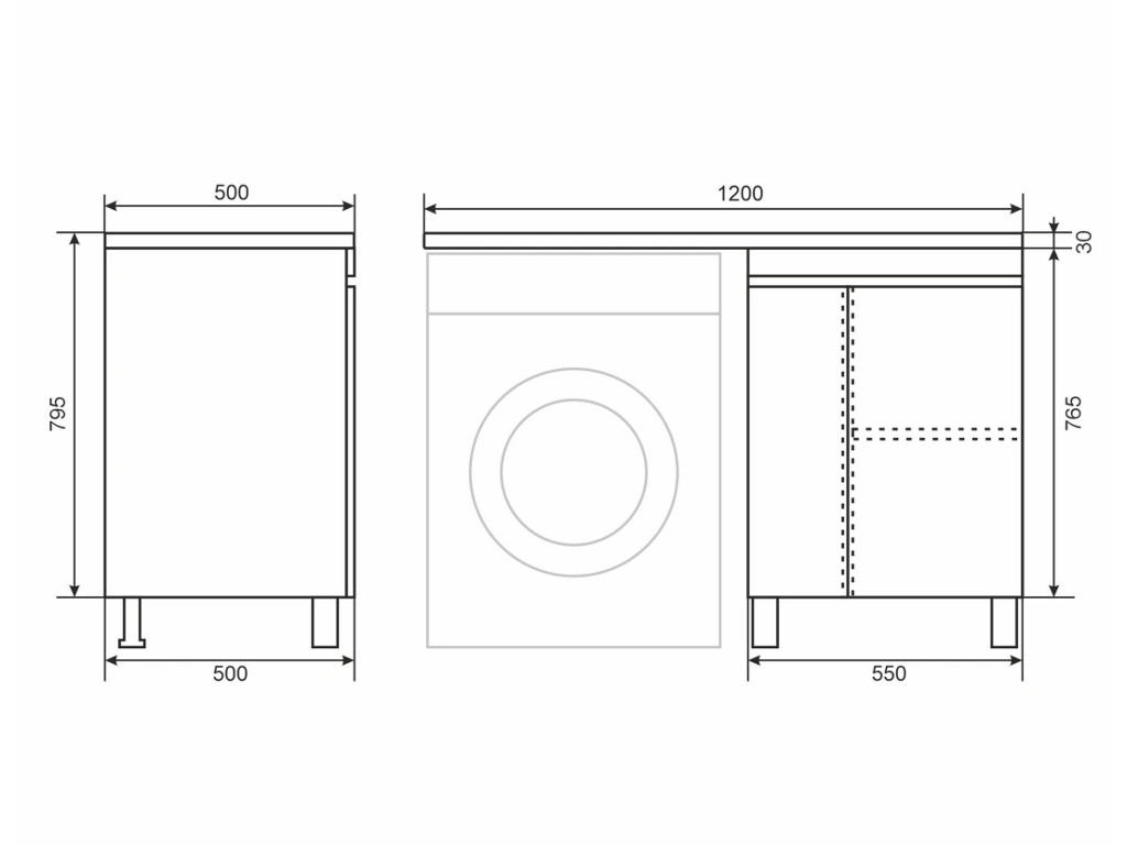 - Фактическая ширина тумбы (см) 55