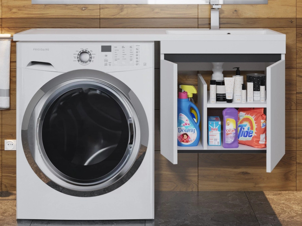 - Тумба с раковиной Uperwood Magenta 60-120 см подвесная белая/графит с дверцами правая