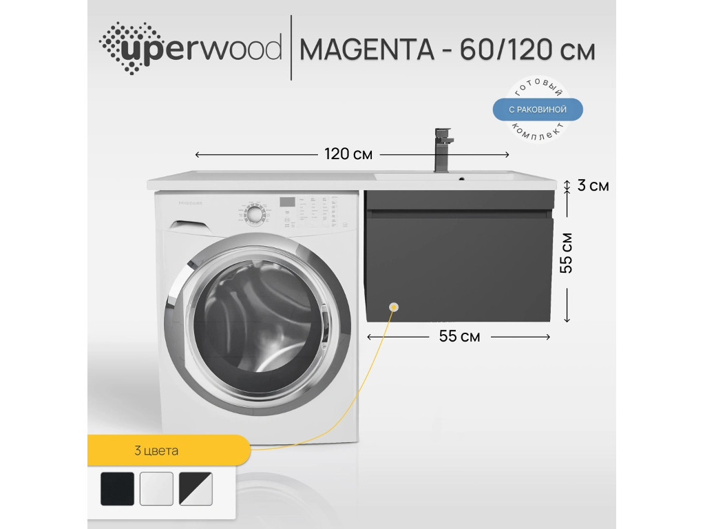 Тумба с раковиной Uperwood Magenta 60-120 см подвесная черная выдвижной ящик правая