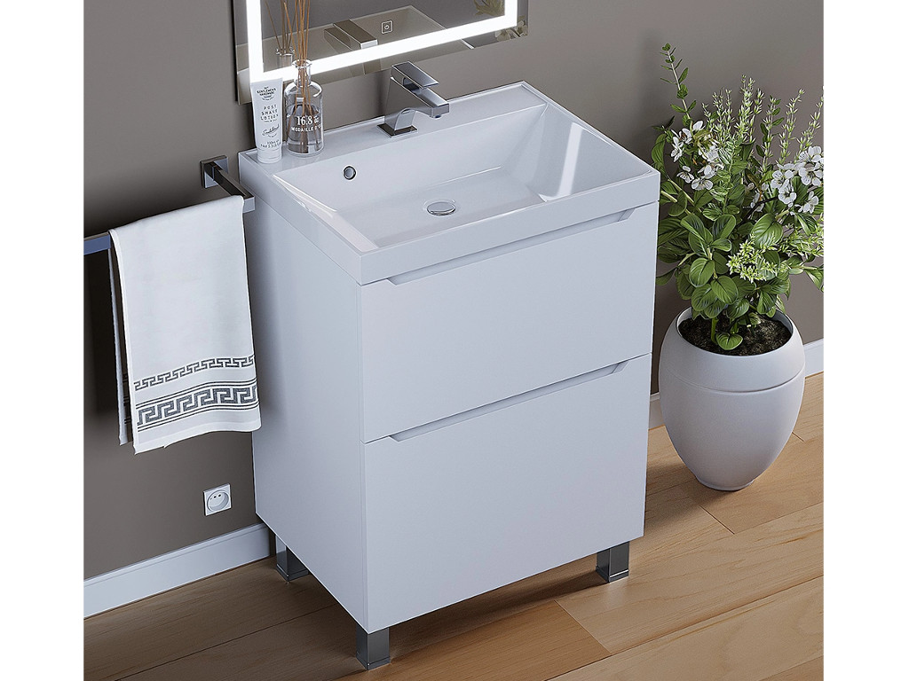 Тумба с раковиной Uperwood Tanos 2 ящика напольная 60 см белая
