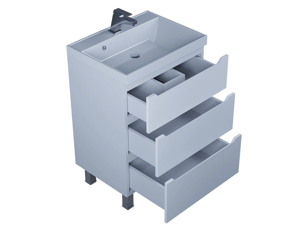 - Тумба с раковиной Uperwood Tanos 3 ящика напольная 60 см белая